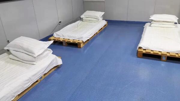 由于新冠病毒傳染性強、潛伏期長等特性,配送人員多次往返醫(yī)院等高危場所,接觸人員復(fù)雜,極易暴露,為節(jié)約時間,同時消除疫情擴散的潛在隱患,值班人員把公司培訓(xùn)室改成臨時臥室,兩張木質(zhì)托盤一拼就成了他們的床,當(dāng)我們還沉睡在被窩里時,他們已經(jīng)在送貨的路上。